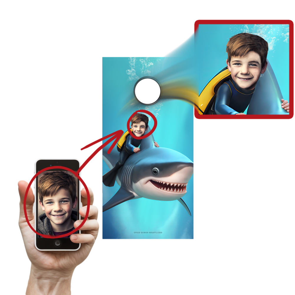 Personalized Kid Riding a Shark Porthole Decals Custom Portrait From Photo